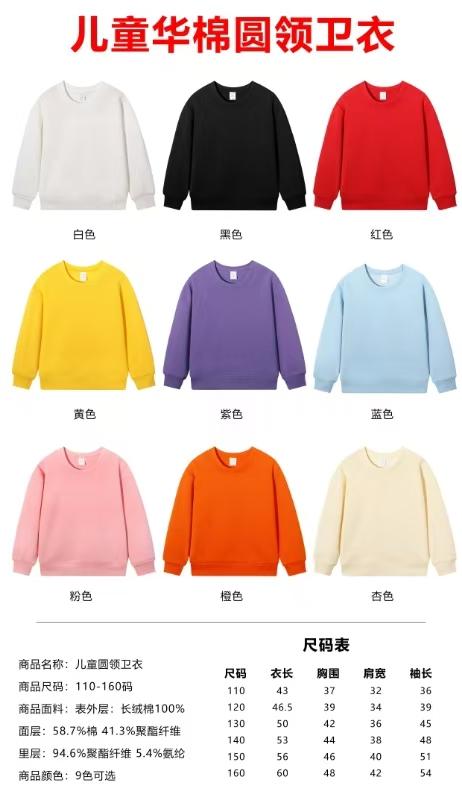 商品名称:5997# #320G 100%纯棉 儿童款华棉圆领卫衣定制 | 广东深圳卫衣定制厂家